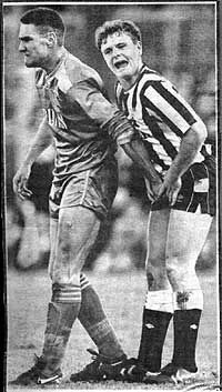 | 49.MARANGONI In honour of Claudio Marangoni, Sunderland’s 80’s Argentinean international with the lopsided head. Pic will have to do until I can get hold of Pat's Pannini annual to scan it in. |